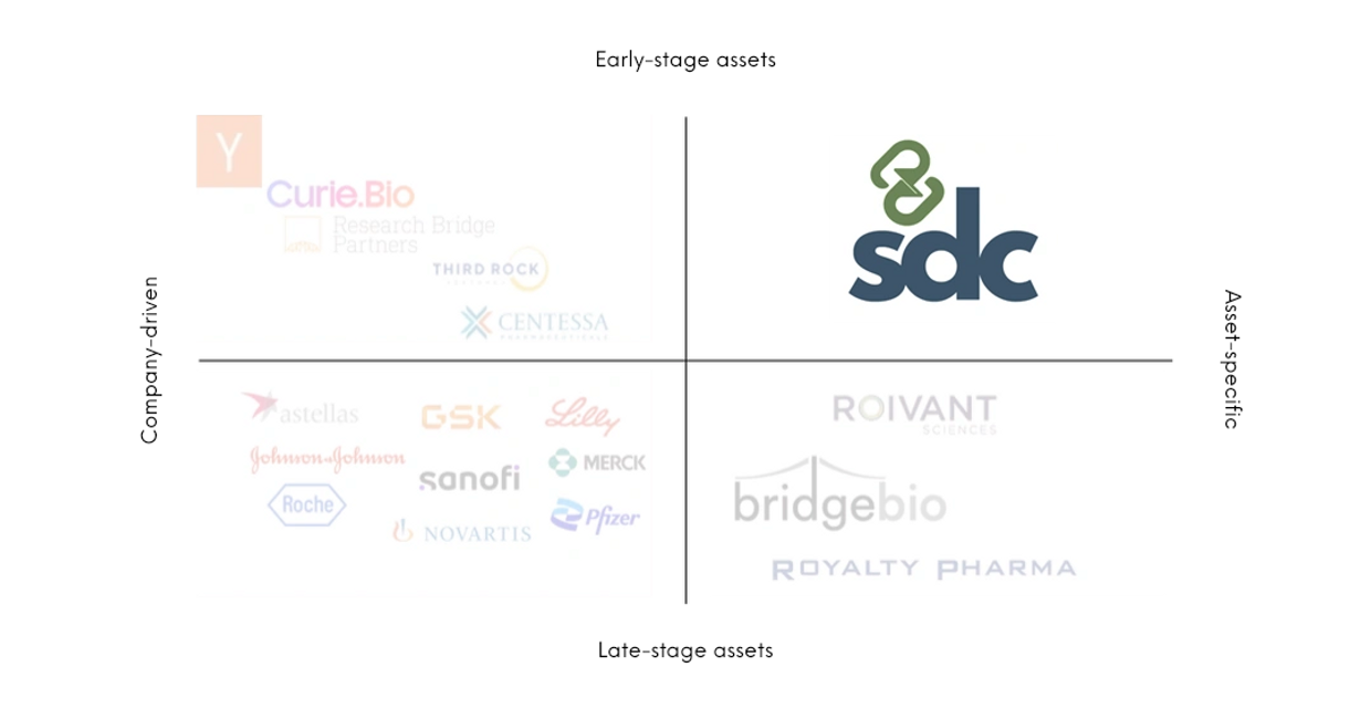 There are an abundance of companies, funds and incubators that invest in early- and late-stage biotech. The vast majority engage with select companies via equity investment or outright acquisitions. Few investors do so via asset specific investments, and there is a clear preference for later stage assets.